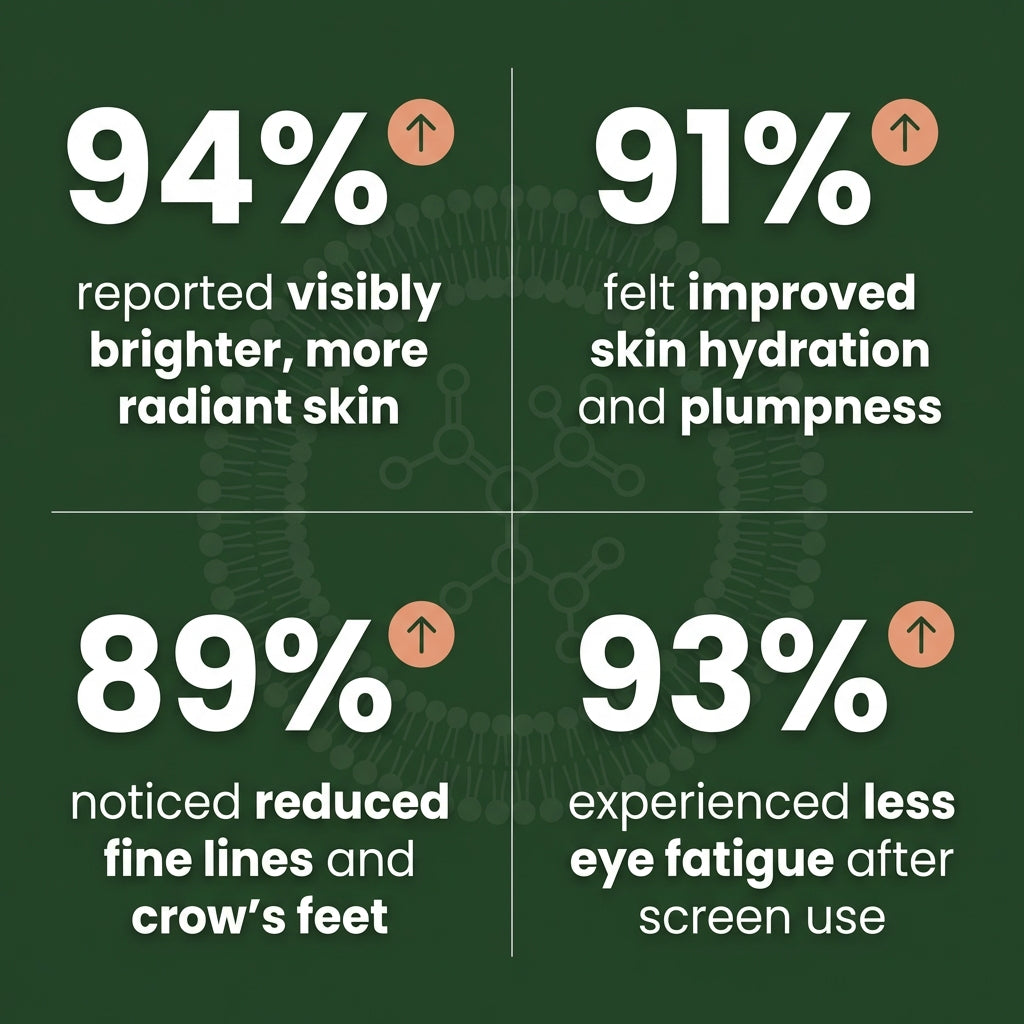 - Closes the antioxidant gap — fights free radical damage at the cellular level, where creams can't reach