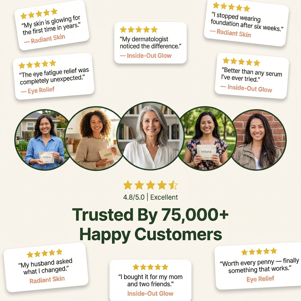 Try Velara risk-free for 60 days. If you don't see a visible difference in your skin's radiance, texture, or hydration — we'll refund every cent. No questions asked.